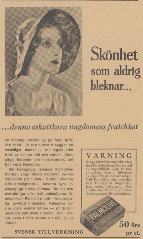 Reklam för Palmolive tvål från 1922. Bildkälla: Wikipedia.