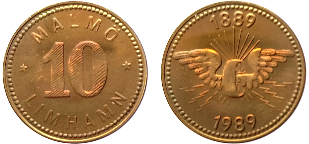 Malmö-Limhamns Järnväg startade 1889 och kallades ”Sillabanan” på grund av att fiskegummor använde järnvägen för transport av fisk till fisktorget i Malmö. 15 och 10 örespolletter användes. 1989 gavs en minnespollett ut.
