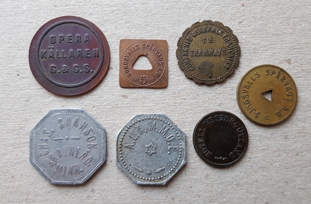 Idag damp ett kuvert ner i brevlådan med polletter från Tradera. En intressant mix av utländska och svenska polletter.