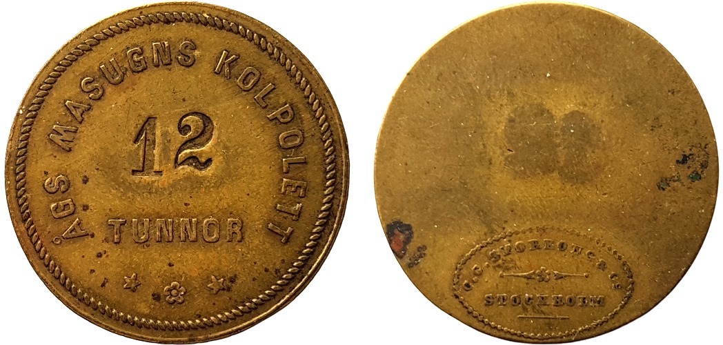 Ågs masugn, Dalarna. Pollett från ca 1880 för leverans av 12 tunnor kol.