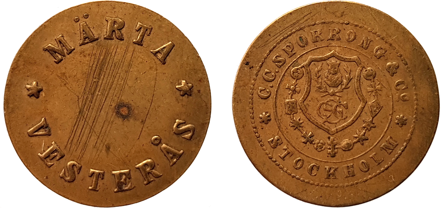 Ångslupen Märta gick mellan Västerås och ön Elba mellan 1900-1919. 19 mm, mässing.