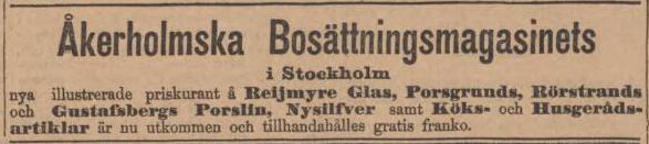 Reklam i Dagens Nyheter 22 november 1889.