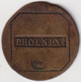 Advers: Inom ram PHOENIX. Sign J G S (Kapten J. G. Söderberg). Revers: Med eller utan tillverkarstämpel.