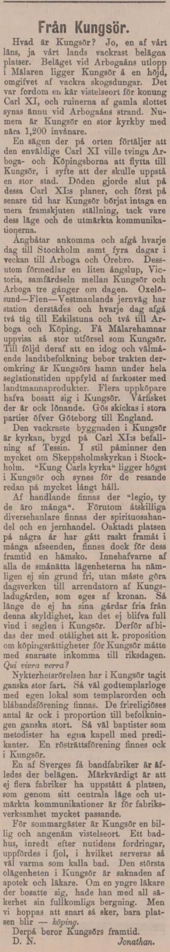 Vestmanlands Allehanda 28 april 1890. Klicka