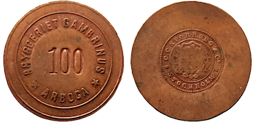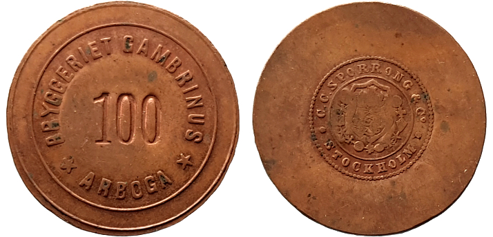 BRYGGERIET GAMBRINUS ARBOGA 100 )( SpNS. Koppar.