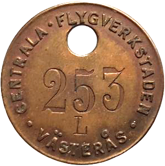 CENTRALA FLYGVERKSTADEN VÄSTERÅS 253 L. Mässing.