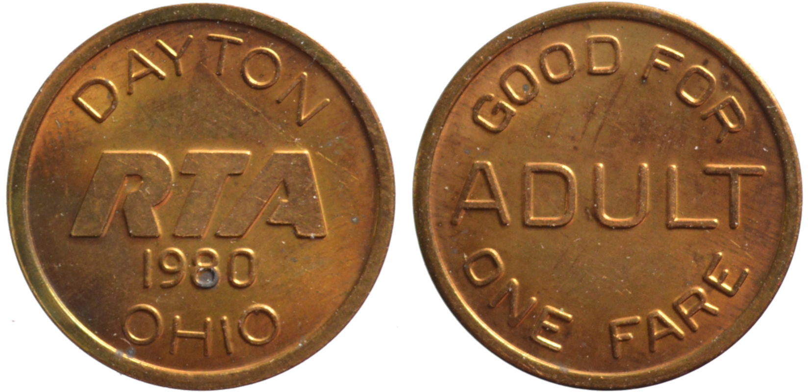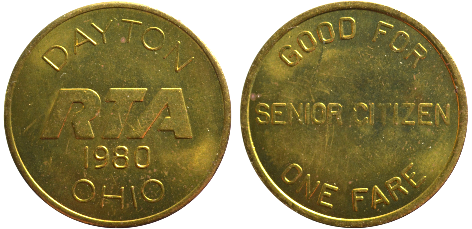 Dayton RTA Good For One Fare Senior Citizen 23 mm. Brass. Atwood-Coffee OH 230 AE.