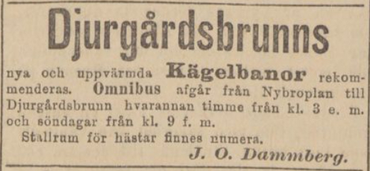 Reklam för kägelbanor i Stockholms Dagblad fredag 18 november 1887.
