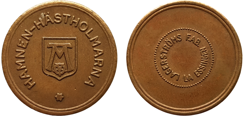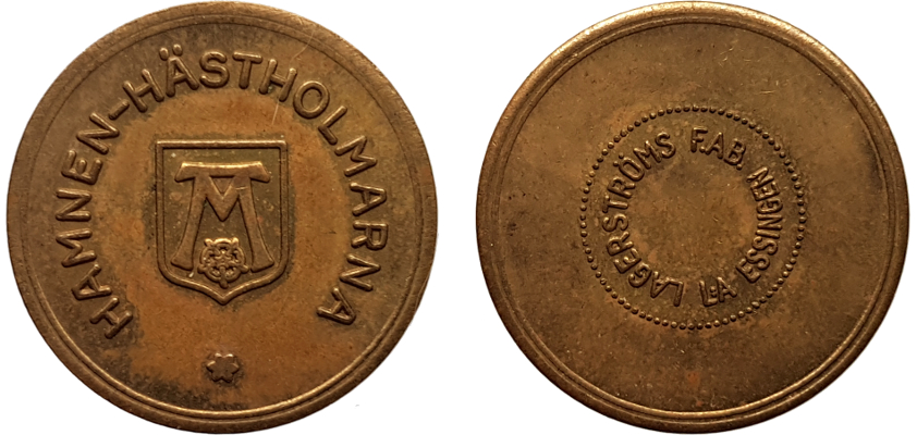 HAMNEN-HÄSTHOLMARNA )( LAGERSTRÖMS F.AB. L:A ESSINGEN. 18 mm. Mässing. Smith Sweden 875FJ.