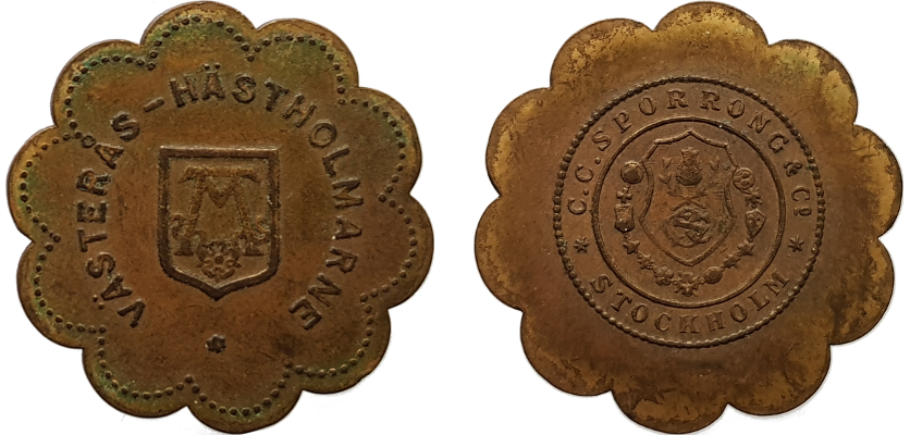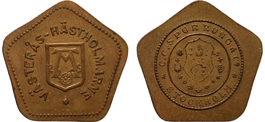 VÄSTERÅS-HÄSTHOLMARNE )( SpNs. 15 × 21,5 mm. Mässing. Smith Sweden 875FH.