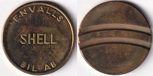 ENVALLS BIL AB SHELL. Mässing. Ex. Tradera 23 november 2025. Ex. Hasturin Antiikki Oy.