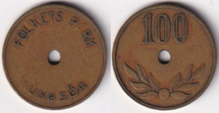 FOLKETS PARK KUNGSÖR )( 100. Rund med hål. Mässing. Id 485.