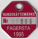HUNDSKATTEMÄRKE Nr 00005 FAGERSTA 1995