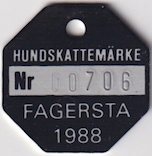 HUNDSKATTEMÄRKE Nr 00706 FAGERSTA 1988