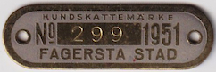 HUNDSKATTEMÄRKE No 298 1951 FAGERSTA STAD