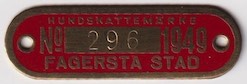 HUNDSKATTEMÄRKE No 296 1949 FAGERSTA STAD
