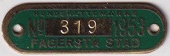 HUNDSKATTEMÄRKE No 319 1953 FAGERSTA STAD