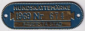 HUNDSKATTEMÄRKE 1969 Nr 674 FAGERSTA STAD