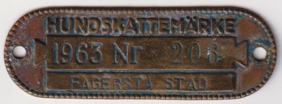 HUNDSKATTEMÄRKE 1963 Nr 206 FAGERSTA STAD