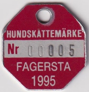 HUNDSKATTEMÄRKE Nr 00005 FAGERSTA 1995