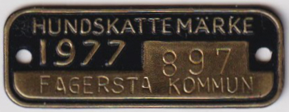 HUNDSKATTEMÄRKE 1977 897 FAGERSTA KOMMUN