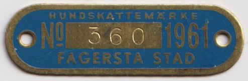 HUNDSKATTEMÄRKE No 360 1961 FAGERSTA STAD