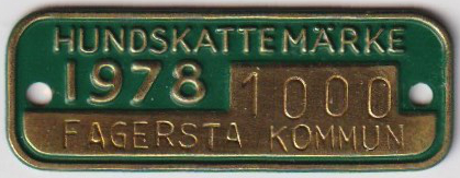 HUNDSKATTEMÄRKE 1978 1000 FAGERSTA KOMMUN Grön