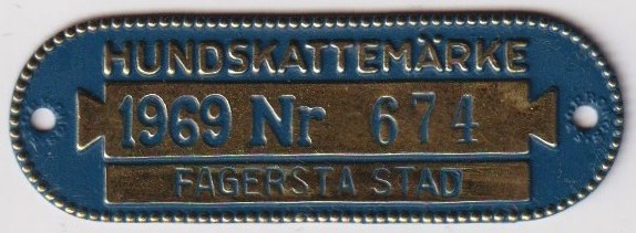 HUNDSKATTEMÄRKE 1969 Nr 674 FAGERSTA STAD