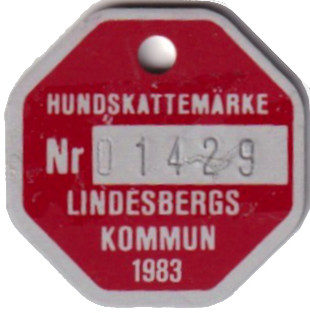 HUNDSKATTEMÄRKE Nr 01429 LINDESBERGS KOMMUN 1983. Röd.