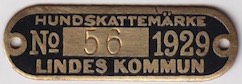 HUNDSKATTEMÄRKE No 56 1929 LINDES KOMMUN. Svart.