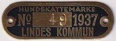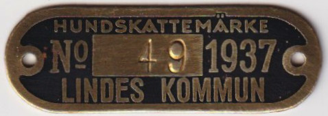 HUNDSKATTEMÄRKE No 56 1937 LINDES KOMMUN. Svart.