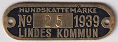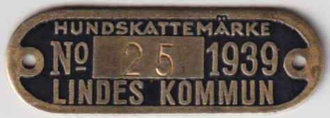 HUNDSKATTEMÄRKE No 25 1939 LINDES KOMMUN. Svart.