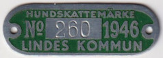 HUNDSKATTEMÄRKE No 260 1946 LINDES KOMMUN. Grön.