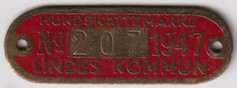 HUNDSKATTEMÄRKE 207 No 1947 LINDES KOMMUN. Röd.