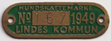 HUNDSKATTEMÄRKE No 167 1949 LINDES KOMMUN. Grön.