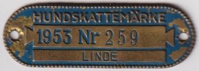 HUNDSKATTEMÄRKE 1953 NR 259 LINDE.