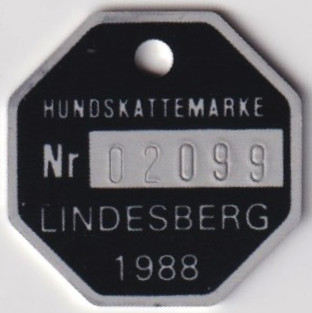 HUNDSKATTEMÄRKE Nr 02099. LINDESBERG 1988. svart.