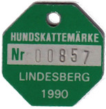HUNDSKATTEMÄRKE Nr 00857. LINDESBERG 1990. Grön.
