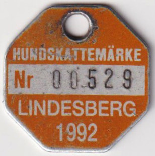 HUNDSKATTEMÄRKE Nr 00529 LINDESBERG 1992. Orange.