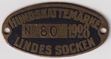 HUNDSKATTEMÄRKE No 80 1928 LINDES SOCKEN. Svart.