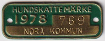 HUNDSKATTEMÄRKE 1978 769 NORA KOMMUN. Grön.