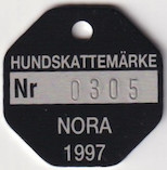 HUNDSKATTEMÄRKE Nr 0305 NORA 1997. Svart.