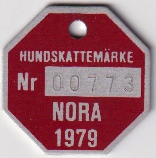 HUNDSKATTEMÄRKE Nr 00773 NORA 1979. Röd.