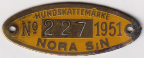 HUNDSKATTEMÄRKE No 229 1951 NORA S:N