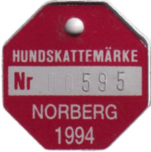 HUNDSKATTEMÄRKE Nr 00595 NORBERG 1994. Röd