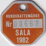 HUNDSKATTEMÄRKE Nr 0063 SALA 1982. Orange.