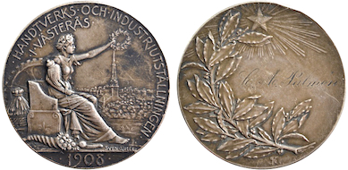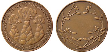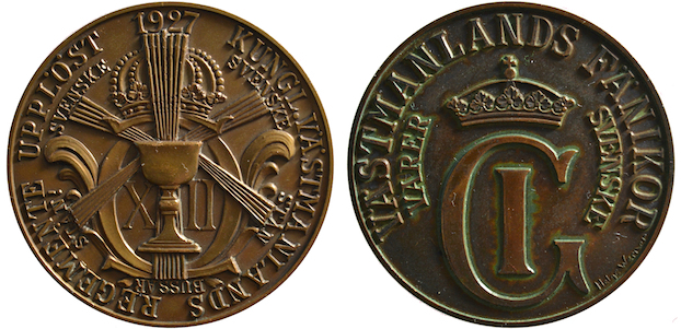 Nedläggningsmedalj 1927. Formgiven av Helge Werner. Brons. Ø 51 mm.