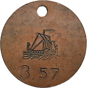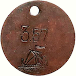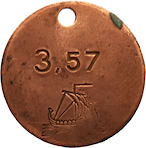 3,57. Vikingaskepp åt höger. Koppar.