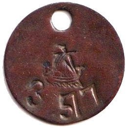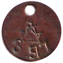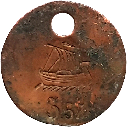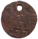 Vikingaskepp åt vänster. V E 2 5? Koppar.