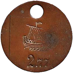 Vikingaskepp åt vänster. 27 7 Koppar.